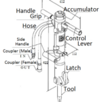 1. Unlock the latch on the breaker and insert tool (moil point etc.)