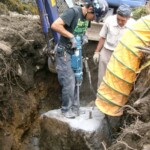 ①Place the end of the rod on the place where you intend to drill, press down the rock drill gently, grip the control lever and start drilling.