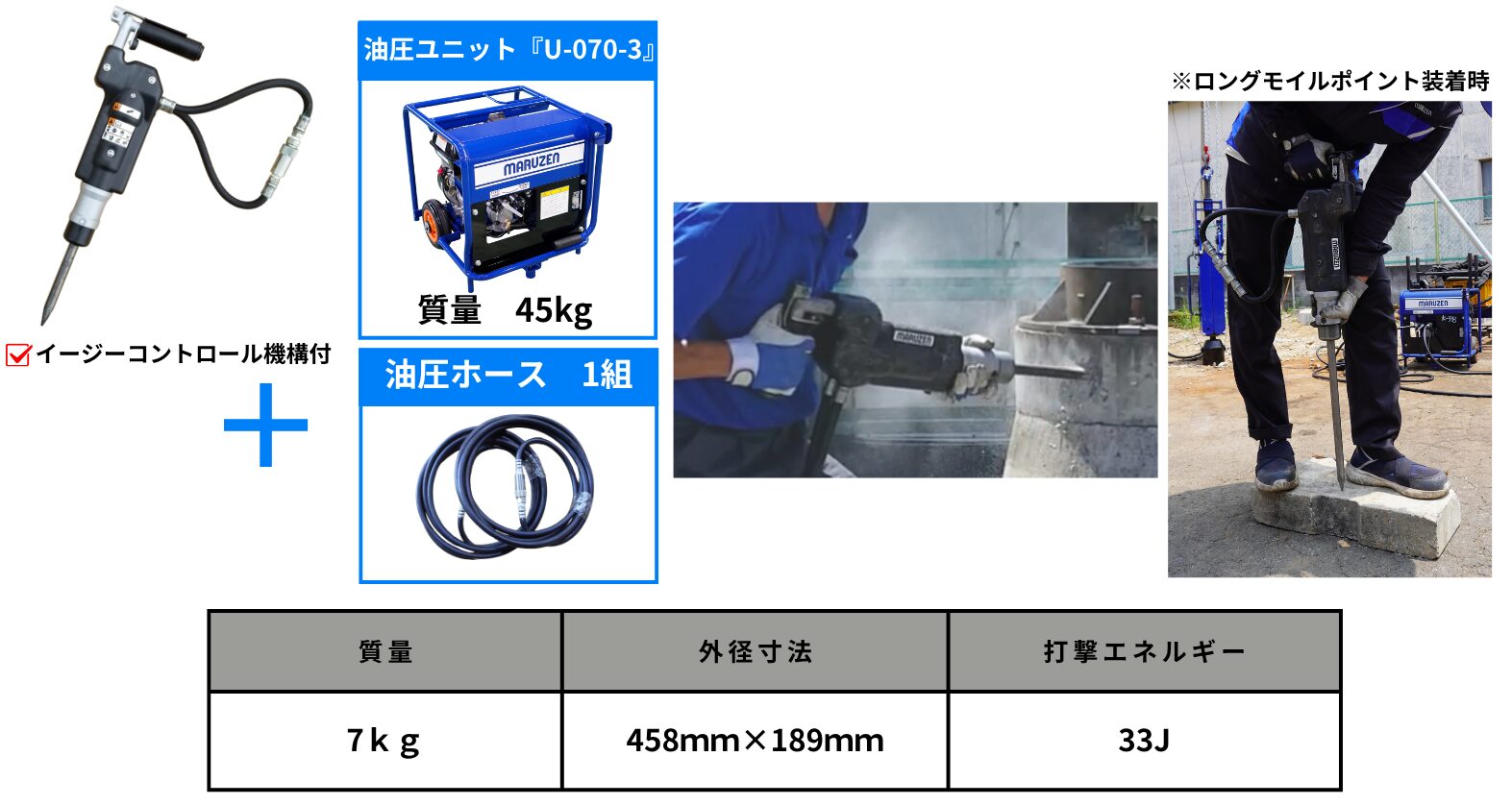 ✅オプション品のロングモイルポイント(500L)で、下ハツリもラクラク!