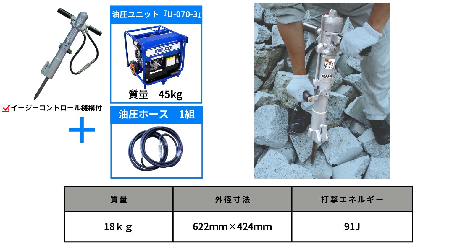 そんな現場の声に応えるのが、強力な打撃力と軽量コンパクトな機動性を兼ね備えた油圧機械です!