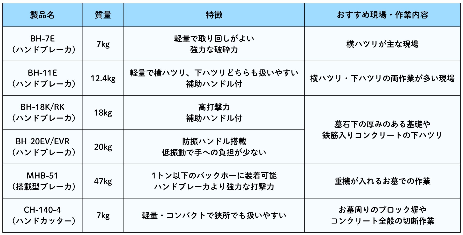 限られたスペースで、効率的かつスムーズに作業を進めるには、軽くて打撃力が強い油圧機械が頼れる存在となります!