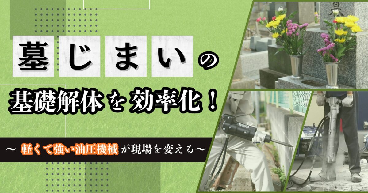墓じまいの基礎解体を効率化!軽くて強い油圧機械が現場を変える