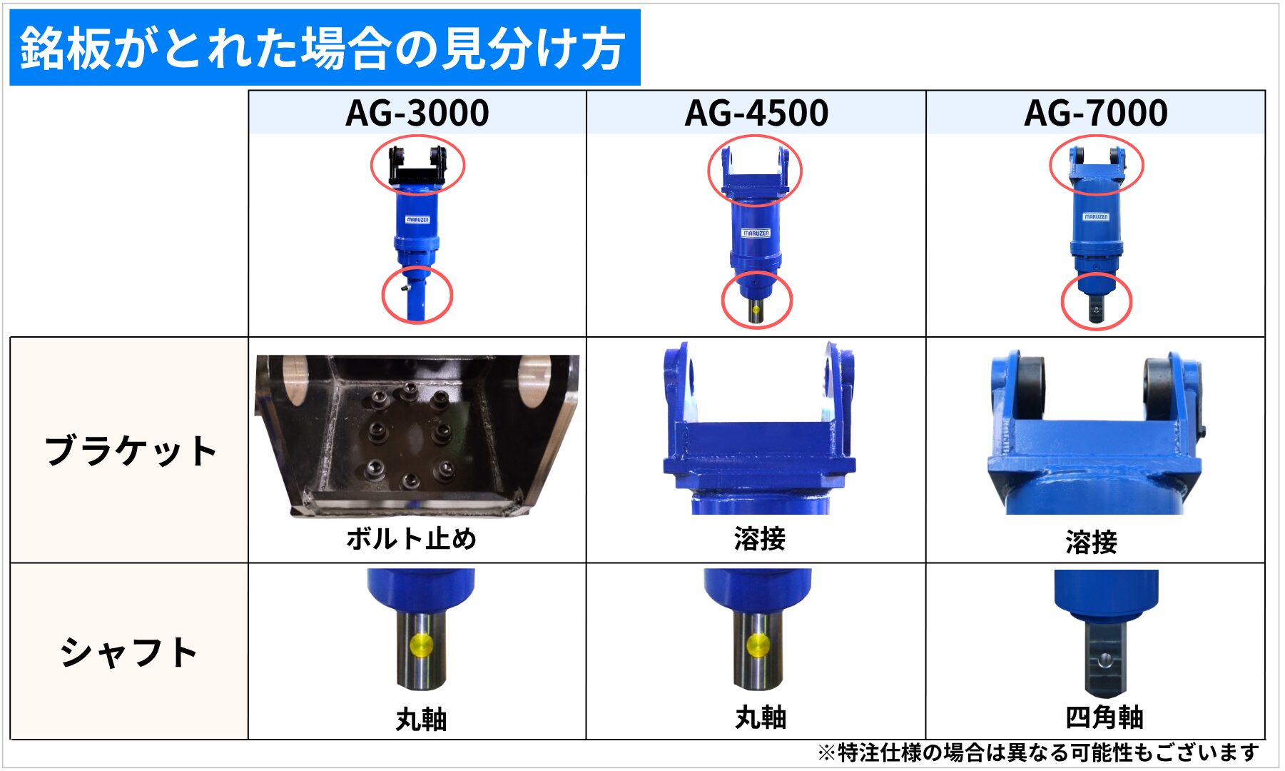 そのような時は、搭載型オーガーの「ブラケット」と「シャフト」を確認すれば見分けることができます!